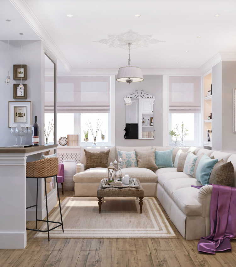 Эта просторная квартира принадлежит семье, которая хотела, чтобы интерьер был лаконичным и элегантным. 4-х комнатная квартира расположена в ЖК Крылов.