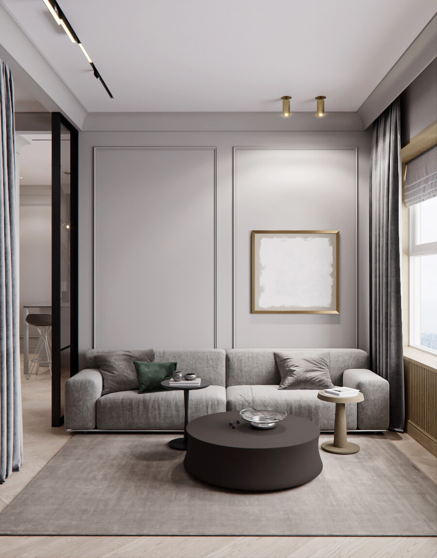 Баланс между минимализмом и классикой. Свет, пространство, сдержанные изысканные оттенки, строгость и функциональность.